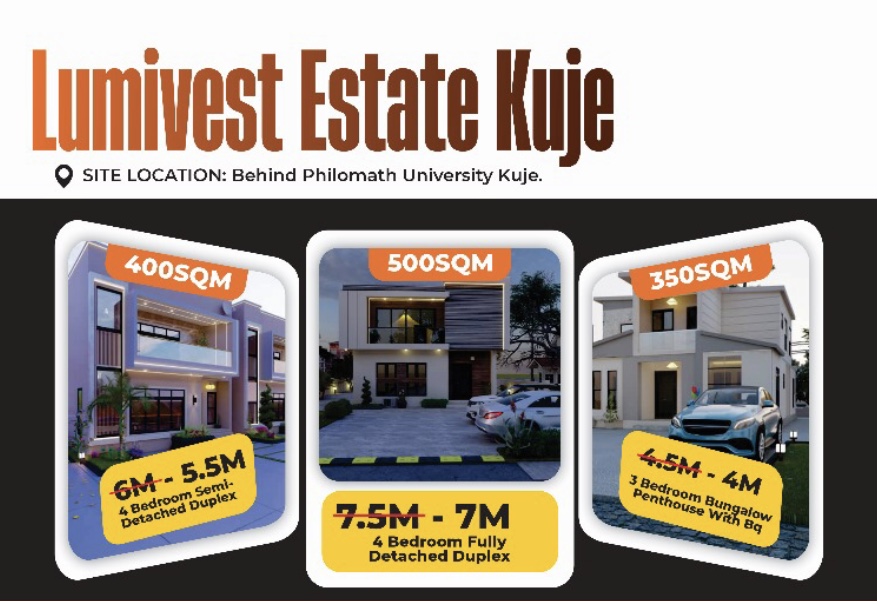 Discover Lumivest Estate in Kuje—modern, affordable homes in a strategic location. Your perfect investment or family home awaits! Contact Realtorking Limited today via WhatsApp at 08161876808 or 09017594425 for a free site visit and find out more!